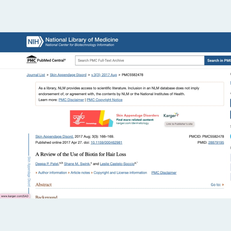 Menurut kajian Profesor Deepa P. Patel, rambut memerlukan nutrien biotin yang cukup dalam proses pertumbuhan dan penjagaan rambut. Kekurangan biotin menyebabkan akar rambut tidak kuat dan pertumbuhan rambut