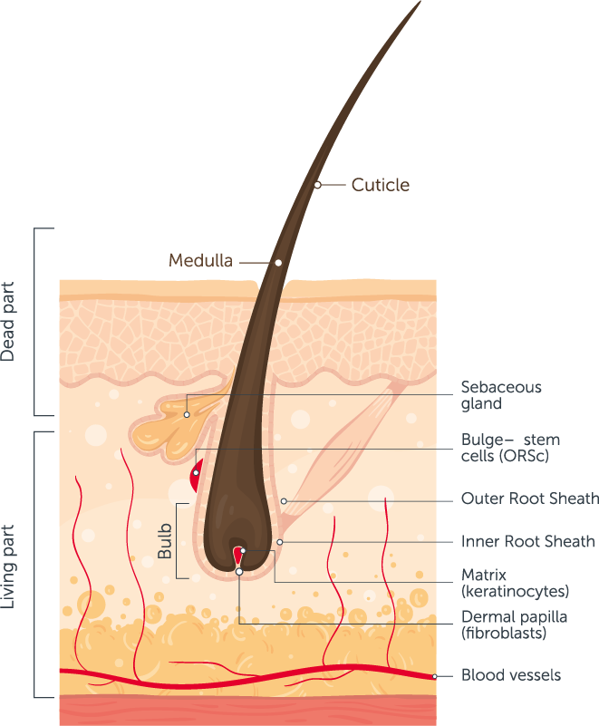 Dalam proses pertumbuhan rambut biotin dan vitamin C memainkan peranan yang penting dalam penghasilan protein keratin. Ini merupakan elemen utama dalam membentuk struktur rambut dari folikel hingga ke hujung rambut.