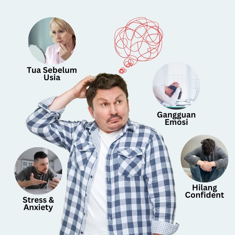 “Bila DHT tinggi, akar rambut makin lemah — dan bila penyerapan nutrisi terganggu (NAS), akar rambut hilang tenaga untuk pulih. Gabungan dua ni jadikan rambut gugur semakin teruk walau dah cuba pelbagai cara.”